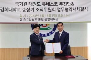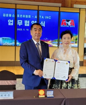 지난 19일(금) 전라북도 무주 태권도원에 위치한 일여헌에서 김운용스포츠위원회(위원장 최재춘)와 ATA(회장 이 선)의 업무협약식이 진행되었다. 최재춘 위원장은 “ATA의 이선회장님을 비롯하여 이순호 명예총재님, 이말건 총재님 방문을 환영하고 감사드린다.이제는 WT와 ITF, 그리고 ATA와 함께 힘을 합쳐 태권도를 하나로 만들어야 한다. 이번 계기를 통해 함께 노력하자”고 밝혔다. 이에 이선 회장은 “이렇게 환대해주셔서 너무 감사드리고 故김운용 총재님과 故이행웅 총재님은 생전 각별한 사이셨고 뜻하시는 바가 같으셨기에 김운용스포츠위