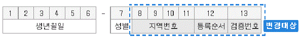 따라서, 13자리 번호 중에서 생년월일‧성별을 제외한 지역표시번호 등을 달리해 새로운 주민등록 번호로 변경토록 했다.