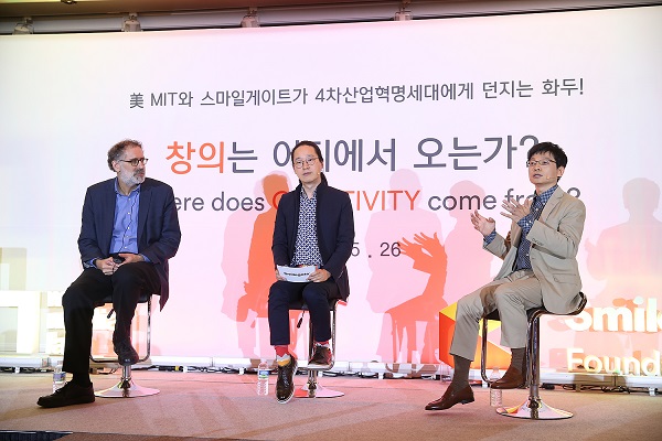 이날 행사는 ‘창의는 어디에서 오는가?’를 주제로 많은 청중이 참석한 가운데 오전 10시부터 12시까지 진행됐다. 권혁빈 이사장과 레스닉 교수가 각각 연사로 나서고, 뒤이어 다음소프트 송길영 부사장의 진행 하에 대담 및 청중과의 Q&A가 진행됐다.