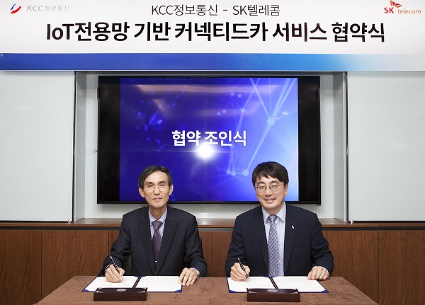 이날 양사는 강서구의 KCC정보통신 본사에서 SK텔레콤 차인혁 IoT사업부문장과 KCC정보통신 이상현 부회장 등이 참석해 이 같은 내용에 대한 MoU 체결식을 가졌다.
