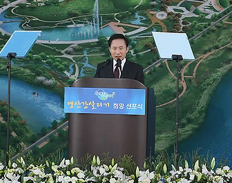 4대강 살리기 사업은 "강 주변에 생태공원과 자전거 도로를 조성하는 등 지역경제에도 보탬이 되고 역사와 문화의 발생지였던 강의 생명력을 강화시켜 국운을 일으켜보자는 뜻이 담겨 있다"고 강조했다.