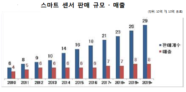 최근 전 세계적으로 주요 선도국을 중심으로 4차 산업혁명을 준비하는 차세대 기술개발 노력은 스마트 센서에 대한 수요가 연 평균 17% 상승하는 주요 요인으로 작용하고 있다.