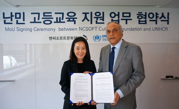 이날 협약식은 윤송이 엔씨소프트문화재단 이사장과 나비드후세인 유엔난민기구 한국대표부 대표 등이 참석한 가운데 유엔난민기구 한국대표부 사무실에서 열렸다.