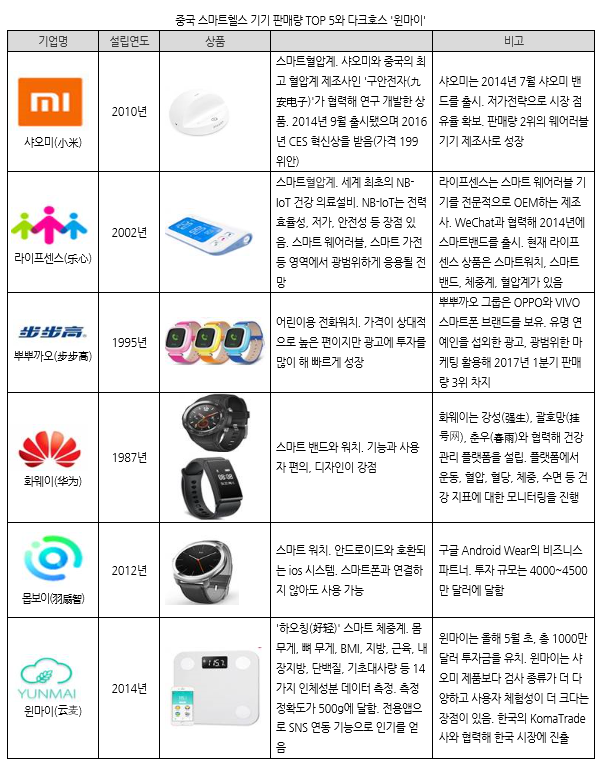 이와 함께 샤오미, 라이프센스 등 주요 기업들은 의료 플랫폼과 연결된 기기 개발에도 나섰다.
