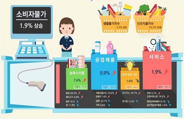 생활물가지수는 전년동월대비 2.3% 상승했으며, 채소, 과일 등 신선식품 지수는 1년 전보다 10.5% 상승했다.
