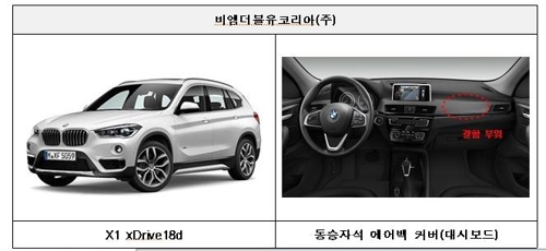 BMW X1 xDrive18d 등 2개 차종 556대는 조수석 에어백 커버에 절개선이 없이 제작되어, 사고시 에어백 커버가 벗겨지지 않아 에어백이 제대로 작동하지 않을 가능성이 발견됐다.