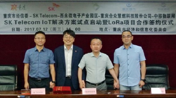 [뉴스비전e 정윤수 기자] SK텔레콤은 13일 중국 충칭에서 LoRa망 기반 가스 원격검침 사업을 공동으로 추진하기 위해 충칭시 경제정보화위원회–충칭가스–차이나모바일(China Mobile)과 4자간 사업협력 양해각서(MoU)를 12일(현지시간 기준) 체결했다고 밝혔다. 충칭가스는 충칭시 약450만 가구에 도시가스를 공급하는 충칭시 도시가스 1위(M/S 70%) 업체다.