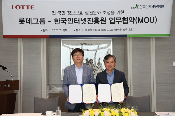롯데는 한국인터넷진흥원과의 협력을 기반으로, 정보보호 실천 캠페인과 관련한 다양한 지원을 약속했다.