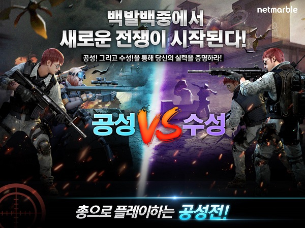 [뉴스비전e 장연우 기자] 넷마블게임즈(이하 넷마블)는 모바일 FPS 게임 '백발백중 for Kakao(이하 백발백중)'에서 새로운 대전 콘텐츠 ‘공성전’을 업데이트한다고 21일 밝혔다.