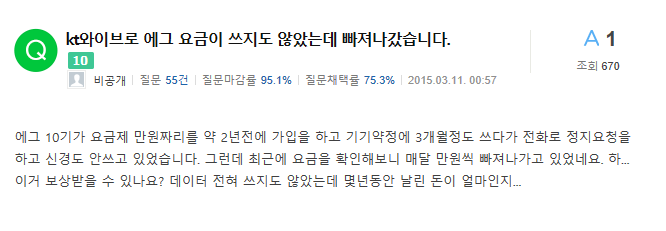 그러니까 1년에 24만원씩 240만원을 데이터를 이용한 적도 없이 KT에 자동이체로 요금을 낸 사람들이 네이버 검색만으로도 쉽게 찾아 볼수 있는 상황이라는 거다.