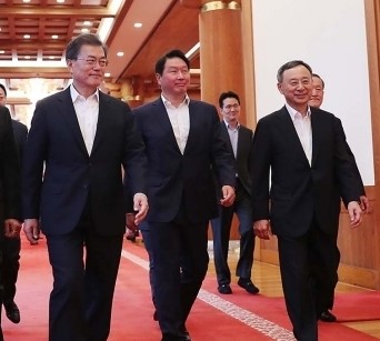 올해 연임에 성공한 황창규 KT 회장은 주요 그룹 총수들과 함께 문재인 대통령의 청와대 초청에 참석했다.