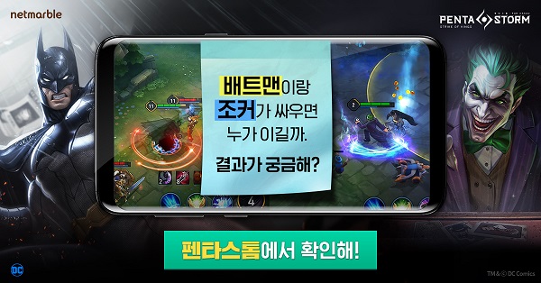 [뉴스비전e 장연우 기자] 넷마블게임즈(이하 넷마블, 대표 권영식)는 모바일 MOBA ‘펜타스톰 for kakao(이하 펜타스톰)’가 DC코믹스의 대표 영웅 ‘배트맨’을 포함해 현재까지 게임 내 총 39종의 영웅을 공개했다고 9일 밝혔다.