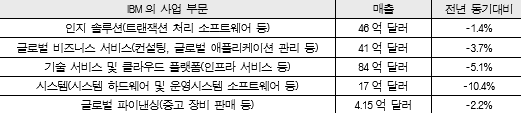 IBM의 경우, 클라우드 시장이 17% 증가하고 있음에도 클라우드 인프라 시장에서 IBM의 점유율은 지난 12개월 동안 변화가 없는 상태다. 클라우드 사업부문뿐 아니라 왓슨(Watson) 비즈니스를 포함하는 인공지능 사업부문 등 주요 5개 사업부문 모두 2분기 매출이 전년 동기 대비 줄었다.