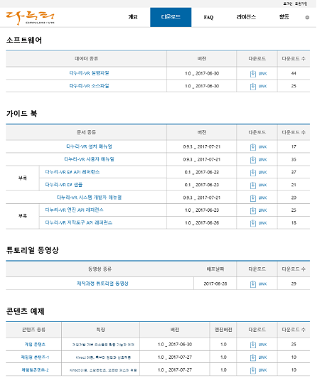 국산 저작도구인 ‘다누리-브이아르’는 파노라마와 가상현실 영상을 제작할 수 있는 저작도구와 공개소스를 활용해 저작도구 기능을 추가할 수 있는 공개된 API로 구성되어 있다.