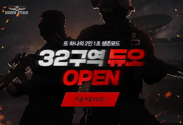 신규 생존모드 맵 ‘32구역(듀오)’는 ‘서든어택’의 인기 콘텐츠 ‘생존모드’의 맵 중 하나인 ‘32구역’을 2인 1조(듀오)로 플레이 할 수 있는 콘텐츠로, 오는 28일까지 3주간 시범 서비스 예정이다.