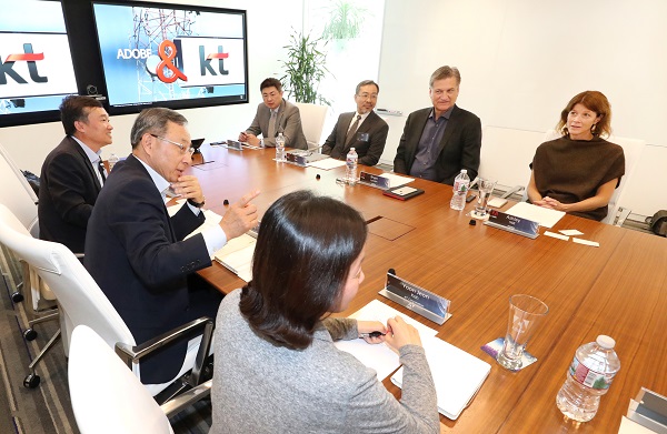KT 황창규 회장은 이번 미국 출장에서 세계 최대 그래픽, 영상편집 솔루션 전문회사 어도비(Adobe)의 새너제이 본사와 구글 크롬캐스트의 제조사로 유명한 플렉스(Flex)의 실리콘밸리 이노베이션 센터를 방문했다. 이들 기업의 첨단 기술을 둘러보는 한편 다양한 협력방안을 논의했다.