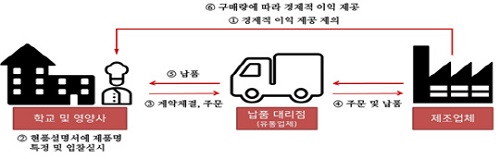 푸드머스와 CJ프레시웨이는 학교영양사들을 유인하기 위해 학교영양사가 근무하는 학교의 자사제품 구매량에 따라 상품권 등을 제공하겠다는 제의를 했고, 또한 실제로 제공했다.
