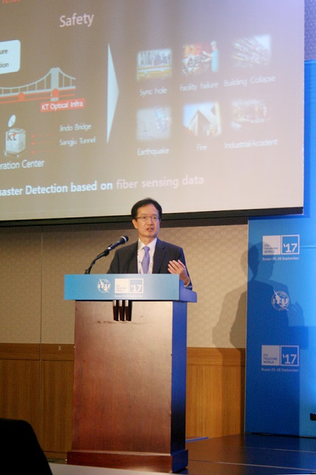 [뉴스비전e 정윤수 기자] KT(회장 황창규)는 25일 부산 BEXCO에서 국제전기통신연합(ITU)이 주관하는 세계 최대의 정보통신 포럼 ‘ITU 텔레콤 월드(Telecom World) 2017’에서 기조연설을 통해, 인공지능과 5G의 융합을 통한 ‘지능형 네트워크’로의 진화가 4차산업혁명 선도의 핵심이라고 발표했다.