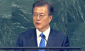 문재인 대통령은 21일 유엔총회에서 취임이후 처음으로 기조연설을 했다. 문 대통령은 연설 중 '평화'라는 단어를 33번이나 사용하면서 북핵 문제에 대한 평화적 해법을 강조했다.