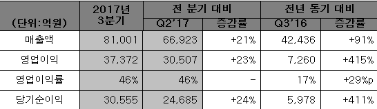 3분기에도 우호적인 시장 환경이 지속되는 상황에서 시장변화에 적극 대응한 결과 매출과 영업이익은 전 분기 대비 각각 21%와 23%로 대폭 증가했다.
