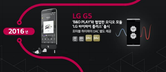 LG전자는 2013년 출시한 G2와 G플렉스에 하이파이 오디오에서 지원하는 24비트 192kHz 규격 음원을 재생할 수 있게 만들었다. 또한 스마트폰에 스테레오 스피커도 탑재해 이어폰 없이 들어도 품질 좋은 음악감상이 가능하도록 만들었다.