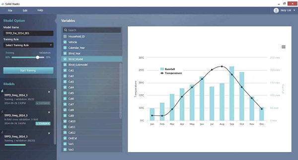 '솔리드스튜디오(SolidStudio)'는 솔리드코어가 도출한 예측 모델을 풍부한 그래픽 이미지를 통해 고객사에 제공하는 UI(User Interface) 도구이다.