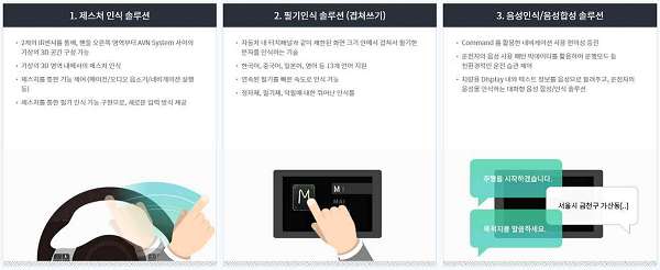 자동차 분야(Automotive)에선 음성기술, 필기인식 및 IR 센서를 이용한 제스쳐 인식 등을 통해 운전자가 주행 중 보다 편안 하게 운전을 할 수 있는 환경 제공해 준다.
