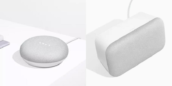 전체가 스피커처럼 생긴 구글 홈 미니는 상단에 제품 상태를 알리는 LED 램프와 내장형 터치 버튼이 달려있다. '오케이 구글' 음성 명령 또는 상단 터치 버튼을 잠시 누르고 있으면 구글 어시스턴트 기능을 이용할 수 있다. 구글 홈 맥스는 스마트 스피커에서 스피커 본연의 기능을 강화한 것이 특징이다. 2개의 4.5인치 우퍼와 2개의 0.7인치 트위터를 탑재해 고음과 저음이 명확하고 선명한 사운드 재생이 가능하다.