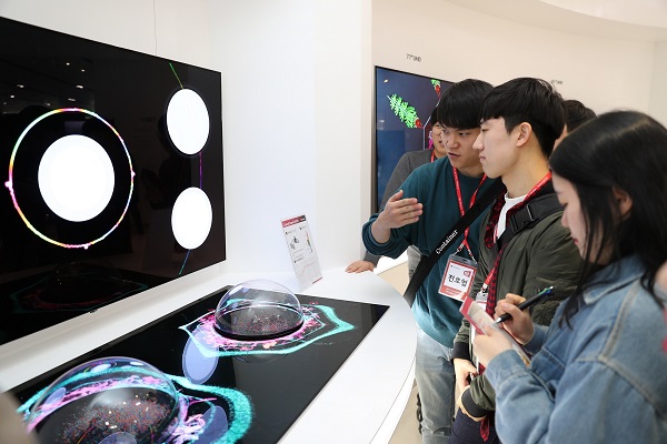 이 날 행사에 참여한 학생들은 그룹 단위로 채용 상담을 가진 후, LG디스플레이 전시관을 견학하며 월페이퍼 OLED TV, CSO(Crytal Sound OLED) 등 글로벌 시장을 선도하는 LG디스플레이 기술의 우수성과 산업현장을 직접 체험해 볼 수 있도록 했다.