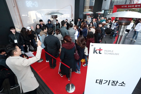 KT iPhone 8 개통 1호 고객은 지난 10월 31일부터 KT스퀘어 앞에 대기한 20대 남성이 차지했다.