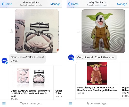 사용자가 이베이 계정과 페이스 북간의 연동을 수락하면 메신저를 통해 상품을 검색하고, 상품과 관련된 질문에 즉각적인 대답 확인이 가능하다. 사용하던 물품에 대한 브랜드, 모델, 사용여부 등에 대한 세부 정보를 구글 홈에 알려주면, 중고 제품의 가치 감정까지 가능토록 할 예정이다.