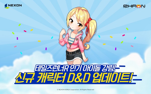 [뉴스비전e 장연우 기자] 넥슨(대표 박지원)은 9일 라온엔터테인먼트(대표 박재숙)가 개발하고 자사가 서비스하는 모바일 신작 ‘테일즈런너R’에 신규 캐릭터 ‘디앤디(DnD)’를 업데이트했다.