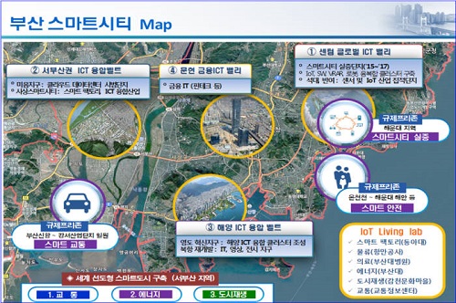 SK텔레콤은 부산시와 경기도 판교에서 증강현실(AR), IoT, 빅데이터 기반의 융합서비스를 제공하며 한국형 스마트시티를 조성하고 있다.