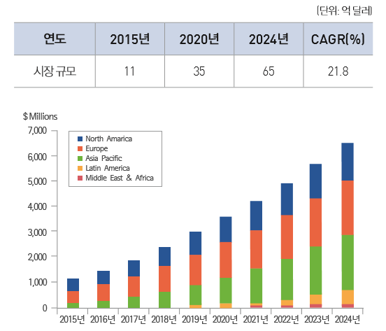 또한, 네비건트 리서치(Navigant Research)에 따르면, 세계 카셰어링 시장 규모는 2015년 11억 달러였고, 2020년 35억 달러, 2024년 65억 달러로 확대되면서 연평균 21.8%씩 성장될 것으로 전망되고 있다.