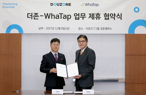 [뉴스비전e 김호성 기자] 더존비즈온(대표 김용우)은 8일 더존ICT그룹 강촌캠퍼스에서 클라우드 기반 IT 모니터링 서비스 업체인 ㈜와탭랩스(대표 이동인)와 사업제휴 양해각서(MOU)를 체결했다고 밝혔다.