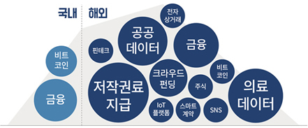 국내에서도 비금융권의 블록체인 기술개발에 대한 투자가 확대되고 있으며, ICT 기술을 적용한 다양한 서비스 모델이 개발 중에 있다.