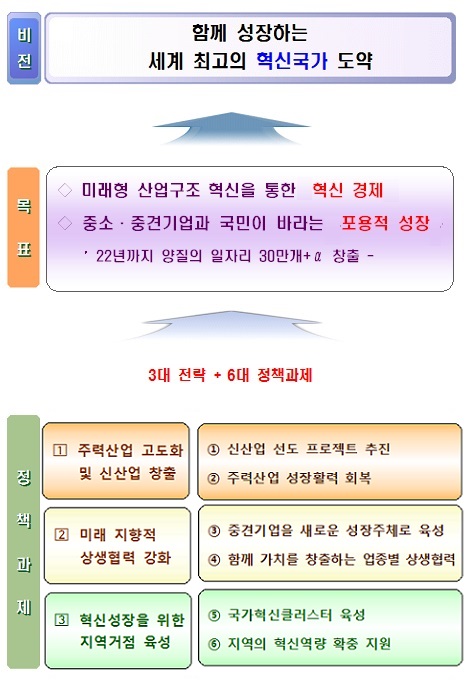 주력산업과 신산업이 함께 성장하는 ‘산업혁신’, 대기업과 중견기업, 중소기업이 상생 발전하는 ‘기업혁신’, 지방과 수도권이 균형 발전하는 ‘지역혁신’ 등을 중점적으로 추진할 계획이다.