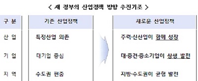 산업통상자원부가 국회 산업통상자원 중소벤처기업위원회에 보고한 '새 정부의 산업정책 방향'에 따르면, 정부는 강력한 제조업을 중심으로 한 우리의 강점을 바탕으로 구조적 문제점을 해결하기 위한 '3대 분야 혁신'을 목표로 설정했다.