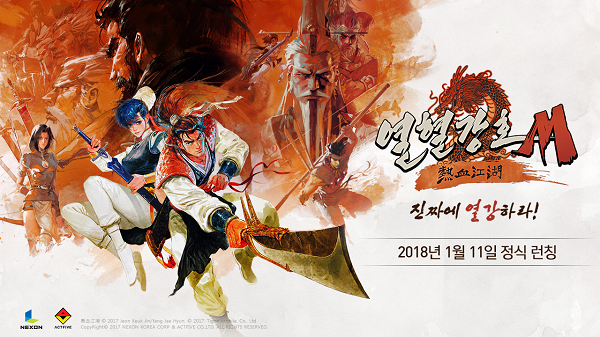 [뉴스비전e 장연우 기자] 넥슨(대표 박지원)은 액트파이브(ACT5, 대표 정순렬)가 개발하고 자사가 서비스 예정인 신작 모바일 게임 ‘열혈강호M’를 2018년 1월 11일 정식 출시한다고 밝혔다.
