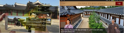 카이스트에서 개발한 어플리케이션은 창덕궁의 한 건물을 가리키면 건축물의 역사와 그에 다른 스토리, 사진, 축소 모형 등의 정보들이 제공된다.