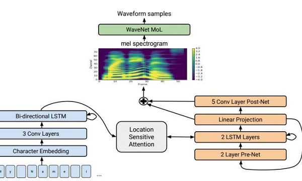 구글의 업데이트된 음성 변환 시스템(TTS)인 타코트론2(Tacotron2)는 두개의 신경망이 글자를 분광사진(spectrogram)으로 변환해 웨이브넷에 전달하는 이를 인간의 음성처럼 읽어낸다.