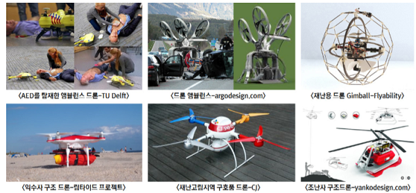 해외의 재난분야 드론 활용사례를 보면 2014년에 유튜브를 통해 소개되었던 앰뷸런스 드론이 대표적인 사례이다.