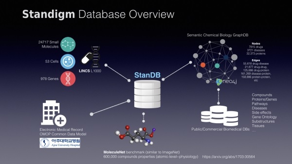 스탠다임은 인공지능을 신약개발에 적용하는 솔수션을 만드는 기업으로 약물 상호작용을 포함한 약물 구조의 데이터베이스에 적용하는 알고리즘을 개발 중이다. 알고리즘을 이용해 컴퓨터 시뮬레이션을 통해 실험적으로 검증이 가능한지 파악하고, 약물 후보들을 효과적으로 필터링해 피드백을 컴퓨터 시뮬레이션 모델에 반영해 재실험할 수 있도록 돕는다.
