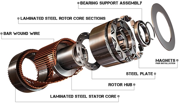 전기자동차에 주로 쓰는 것은 동기모터로 동기모터가 다른 모터들보다 작게 만들 수 있어 전기자동차에 더 적합하다. 이처럼 전기모터는 전기자동차의 핵심기술 중 하나다.