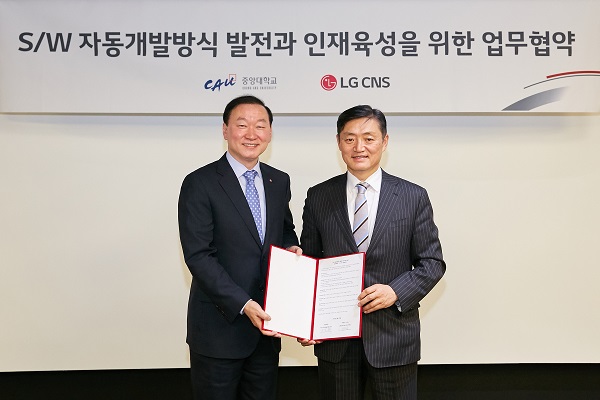 [뉴스비전e 정윤수 기자] LG CNS와 중앙대학교가 21일 소프트웨어(SW) 개발 전문가 육성을 위한 업무협약(MOU)을 체결했다.