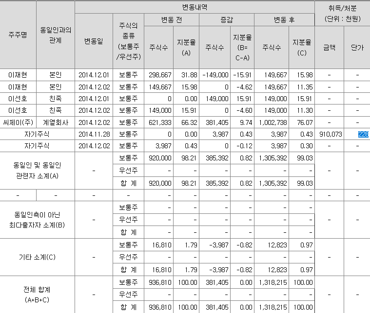 단지 2014년 12월 합병 당시의 상황은 CJ시스템즈 지분을 보유중이던 선호씨에게 유리한 계산을 할 수 있는 '타이밍'에 해당된게 아니냐는 관점에서다.