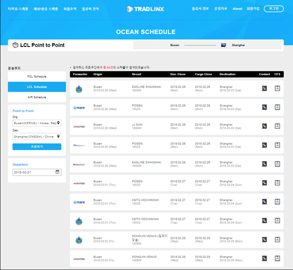 트레드링스의 ‘LCL 스케줄 조회 시스템’은 이런 문제점을 해결했다. 누구나 온라인을 통해 국내 주요 콘솔사의 최신의 스케줄을 손쉽게 확인할 수 있게 했으며, 수출입 업무에 필요한 스케줄별 콘솔사의 정보와 CONTACT POINT, CFS 정보 등을 한 번에 제공하여 편리한 수출입 업무를 진행할 수 있도록 돕는다고 트레드링스는 전했다.