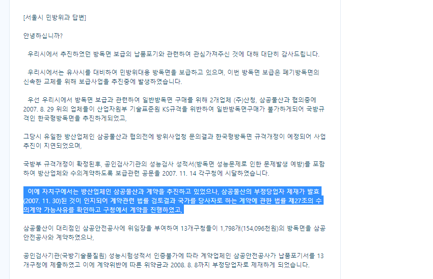 정부가 왜 구지 CJ그룹 오너 자녀들이 지배하며, 일감 몰아주기의 논란에 서 있는 에스지생활안전의 제품을 납품 받았는지를 차치하고, 제품 자체에는 논란은 없었는지를 살펴봤다.