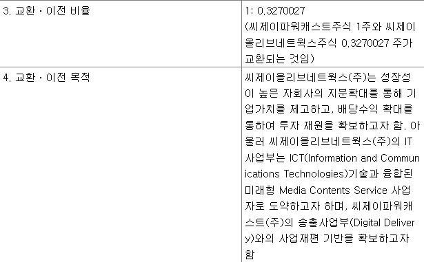이재환 CJ파워캐스트 대표가 지분 9.58%를 형 이재현 CJ 회장의 자녀들인 이선호 CJ 부장과 이경후 CJ 상무에게 각각 5.75%와 3.83%씩을 넘겼고, 넘어간 주식들은 곧바로 CJ올리브네트웍스 주식으로 교환된다.