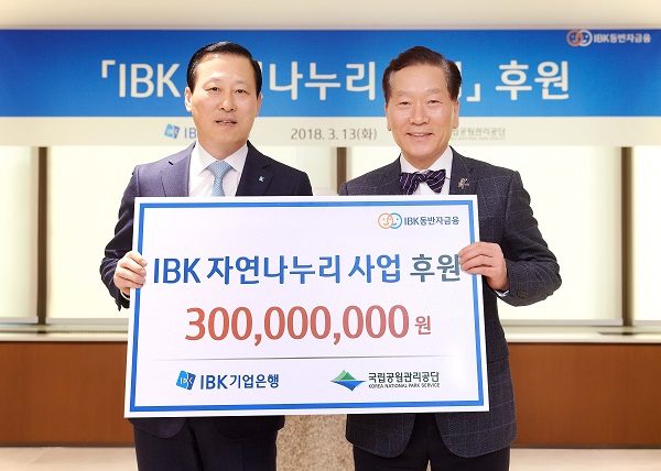 [뉴스비전e 이진구 기자] IBK기업은행(은행장 김도진)은 지난 13일 서울 을지로 본점에서 ‘IBK자연나누리 사업’을 위해 국립공원관리공단에 후원금 3억원을 전달했다고 밝혔다.